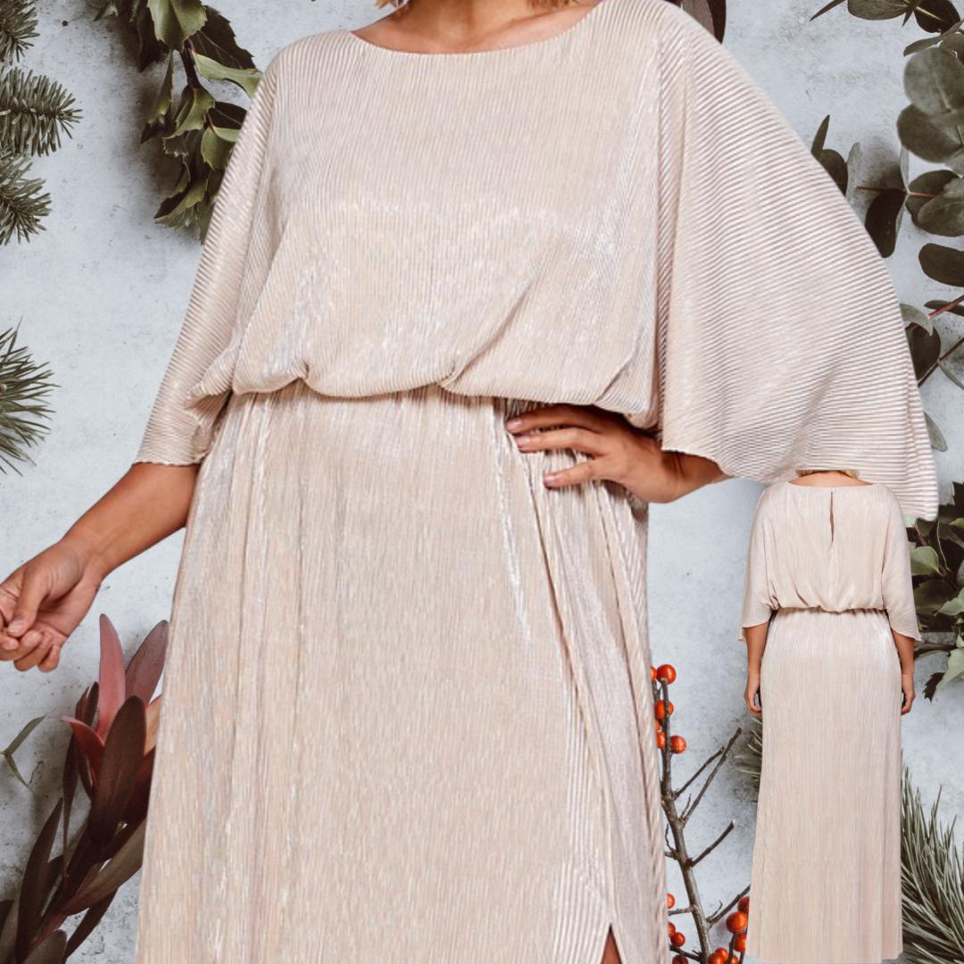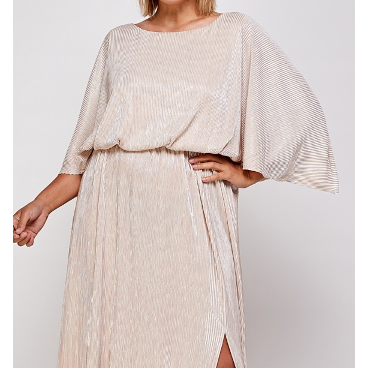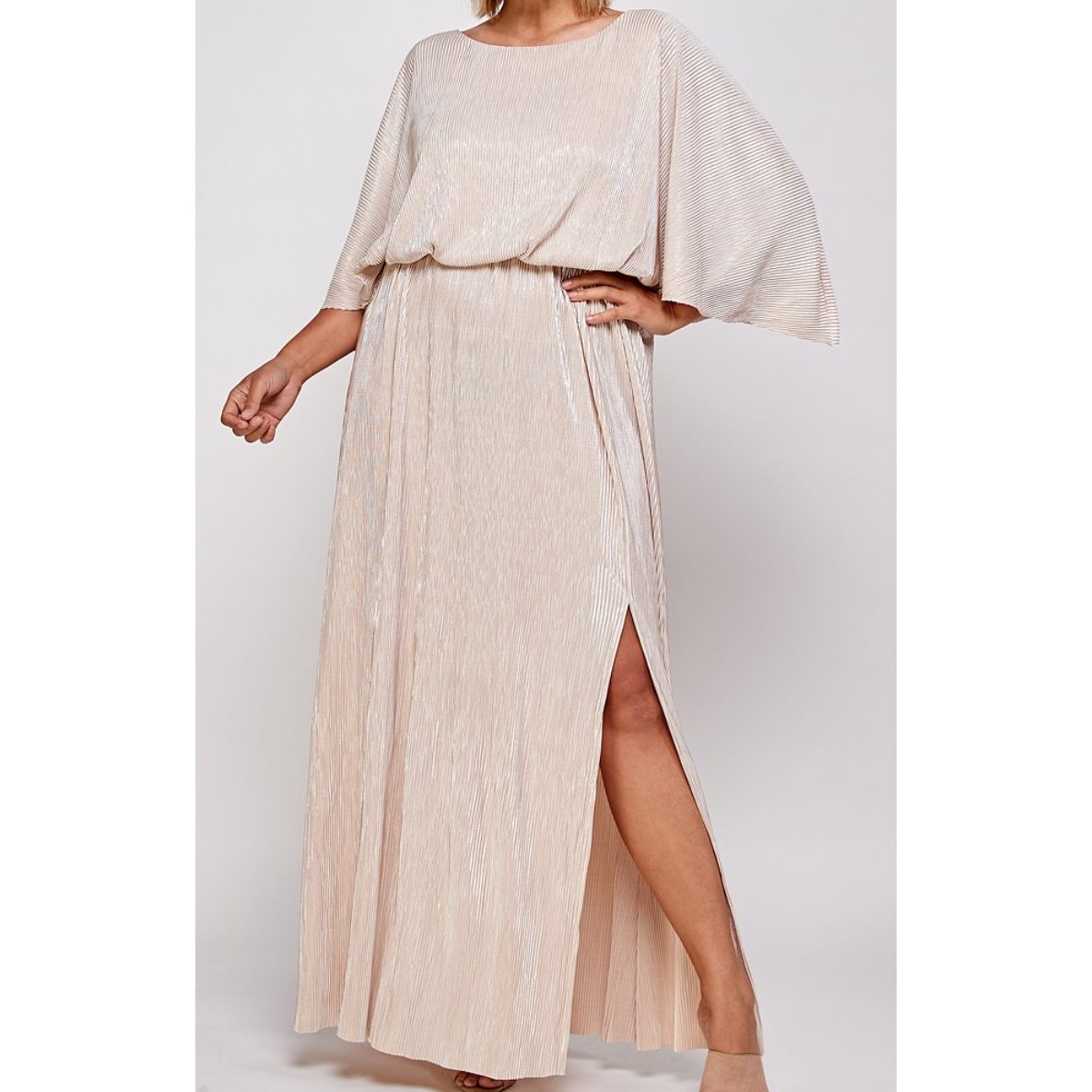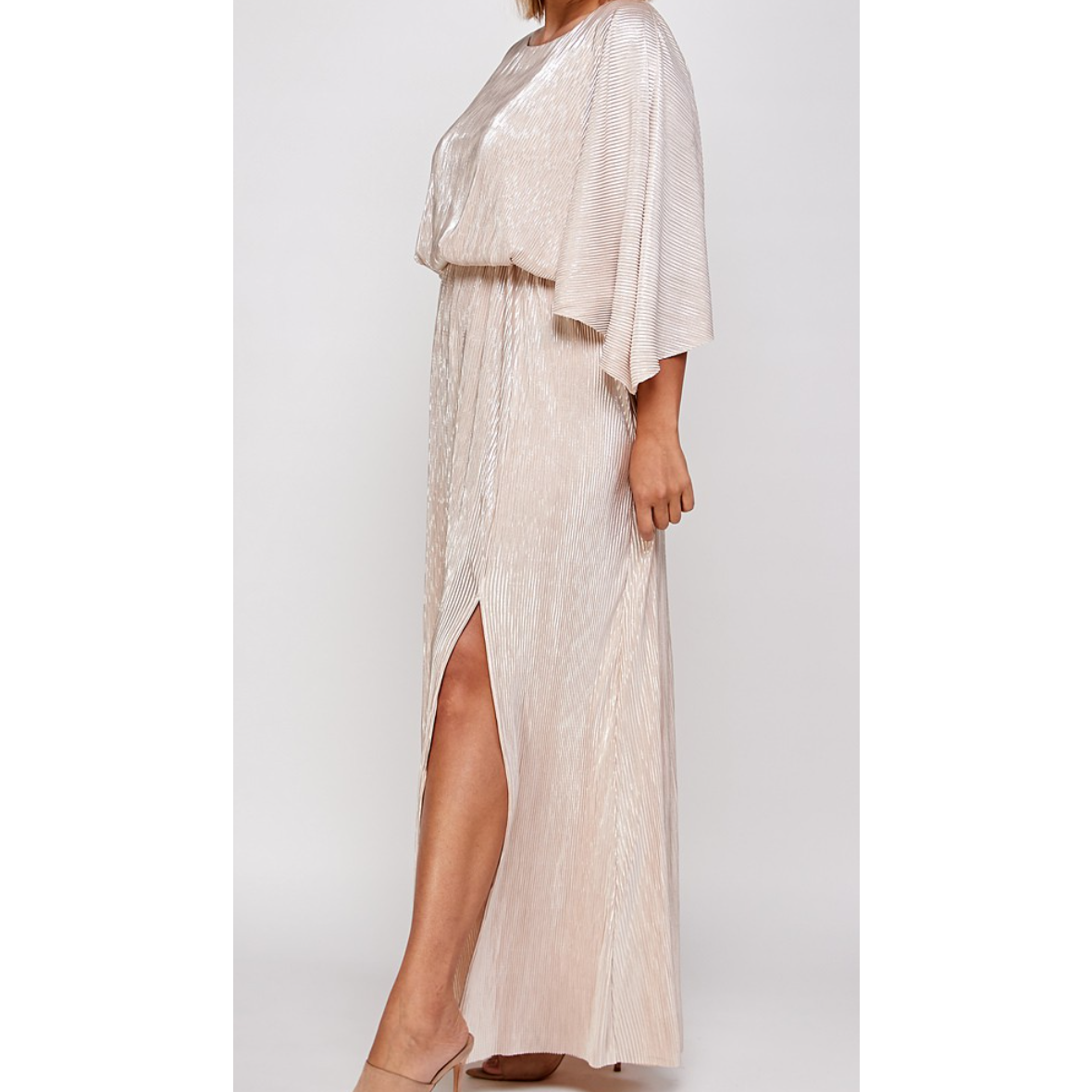 Cape Style Metallic Stripe Pleats Maxi Dress * Size chart - Bust 21" - Length 58 1/2