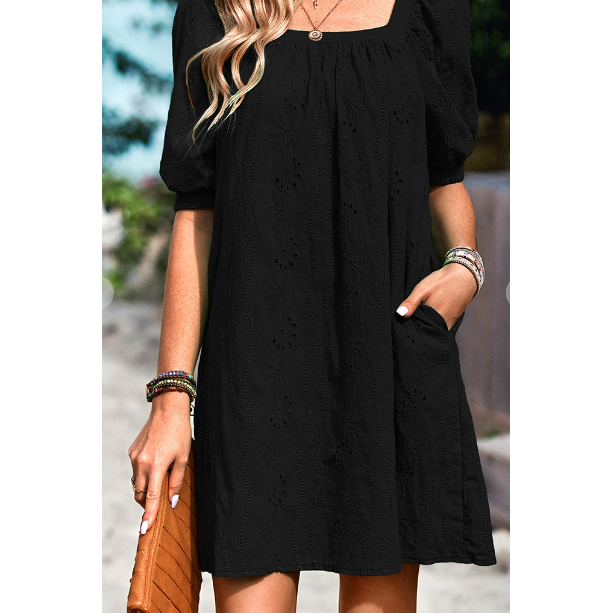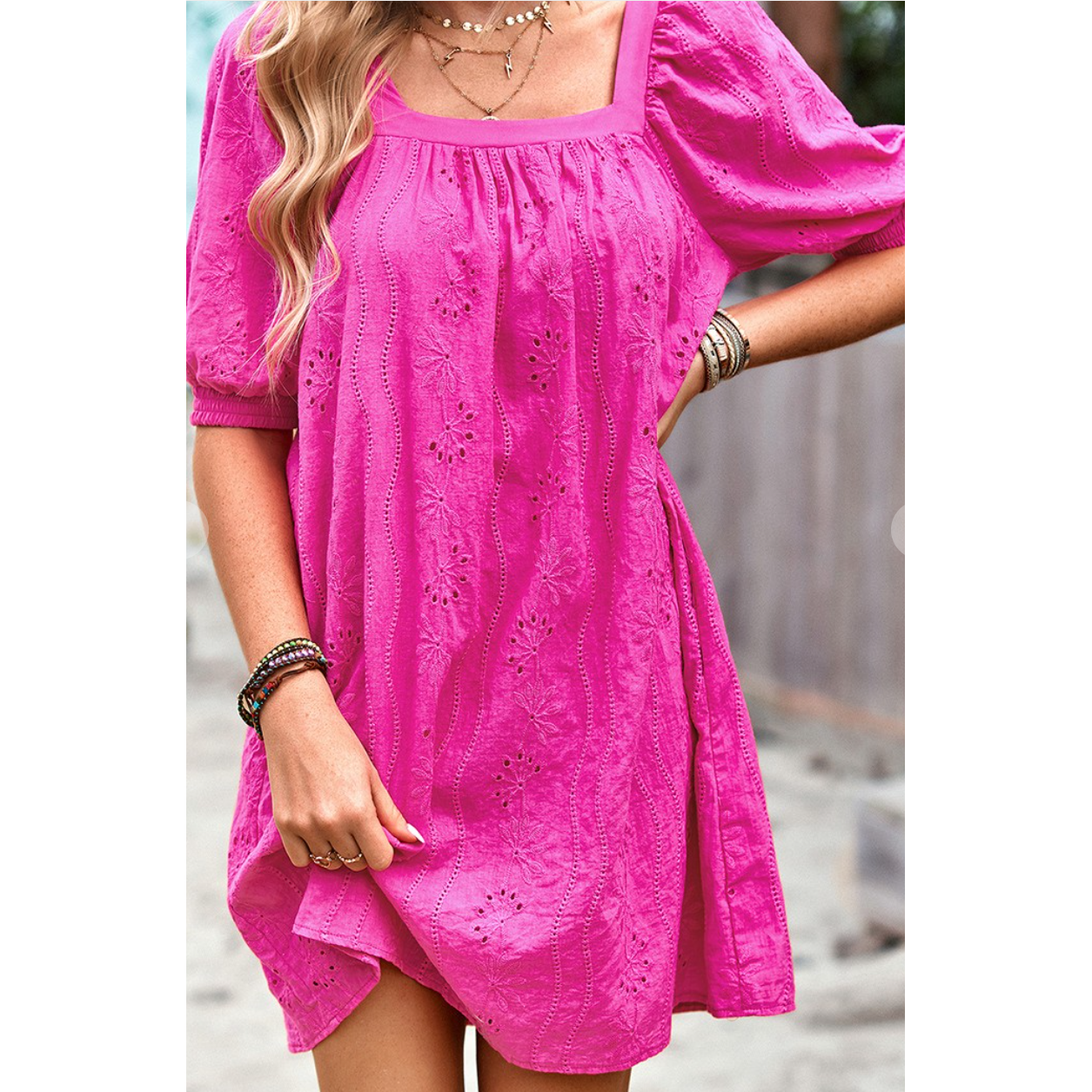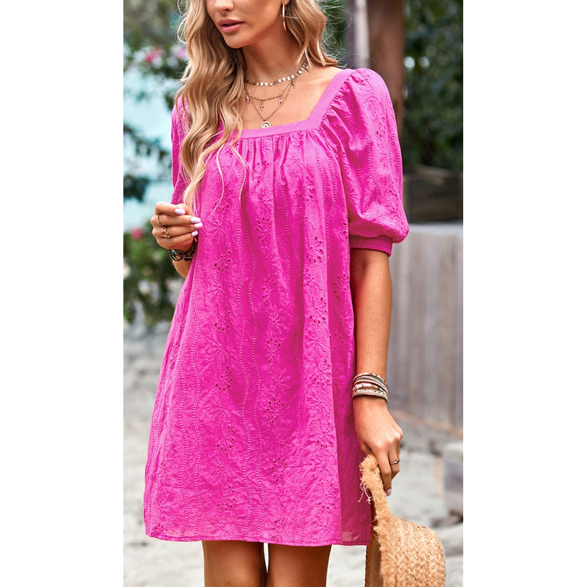 Chic & Comfortable: 100% viscose babydoll dress featuring a flattering square neckline and playful bubble sleeves. Ideal for everyday wear, weekend adventures, vacations, or casual outings.