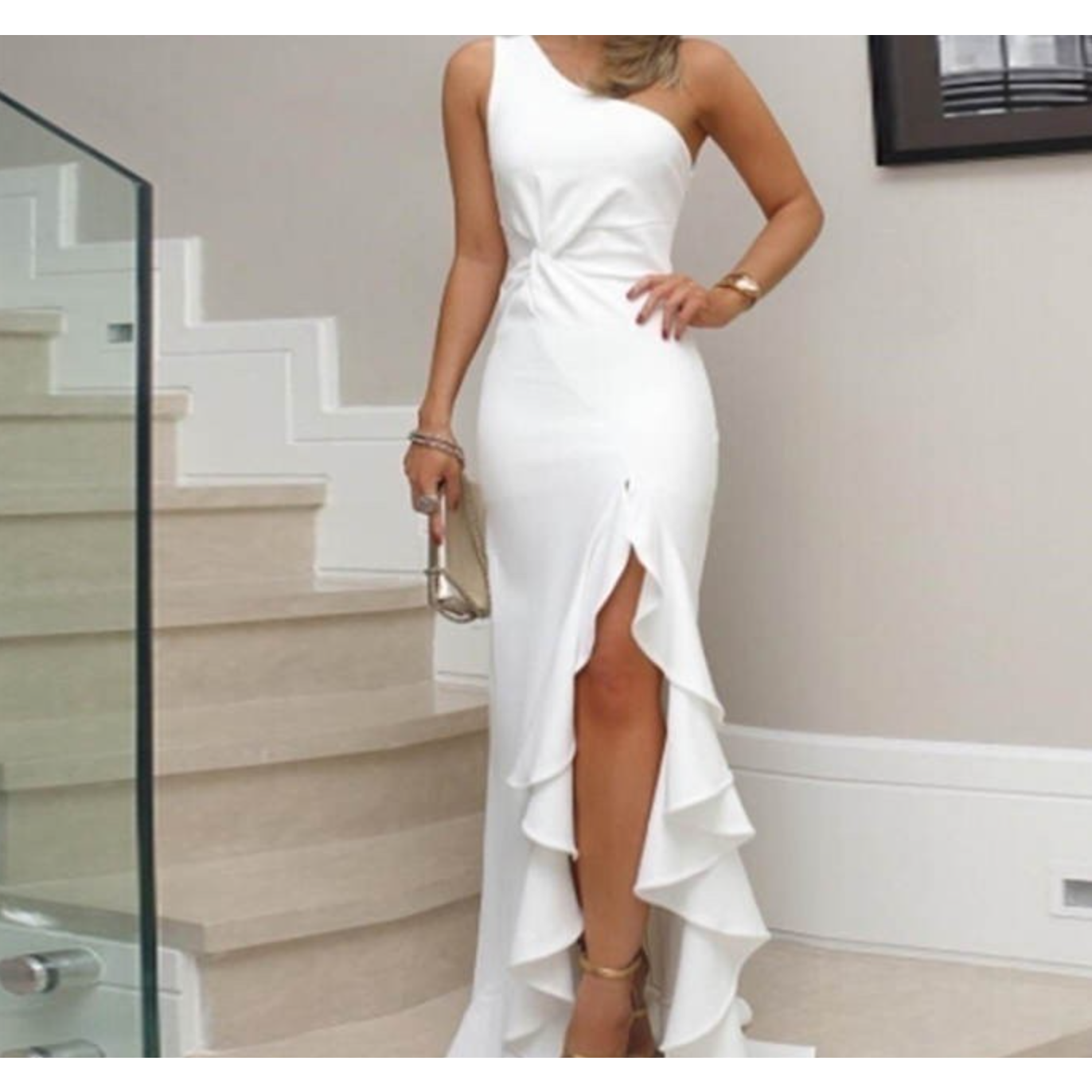 Ruffled Solid One Shoulder Long dress perfect for a special occasion.